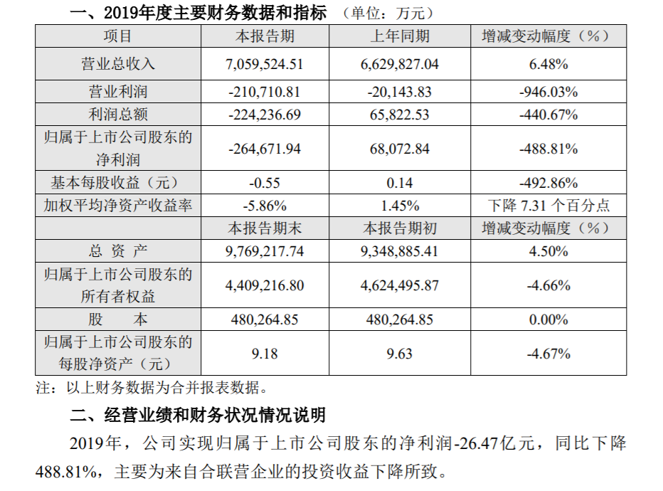 蓝鲸汽车4月15日,昨日,长安汽车(SZ:000625)发布2019年度业绩快报显示,2019年长安汽车实现营业总收入705.95亿元,同比增长6.48%;但归母净利润却亏损高达26.47亿元,同比大跌488.81%,系长安汽车上市以来归母净利润首次亏损。