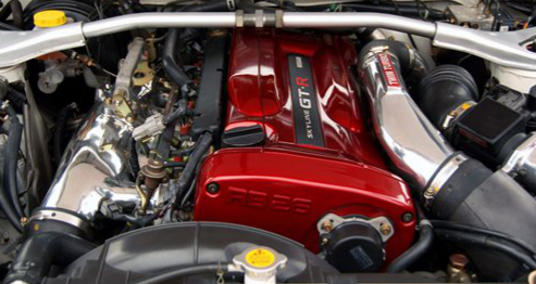 最后重头戏来了,R32搭载了型号为RB26DETT的2.6L直列六缸双涡轮增压发动机,在当时的日本汽车厂商之间有个不成文的“君子协定”,所有出厂车辆不许超过280马力的动力上限。所以这台发动机的参数就被“标定”到最大马力280Ps/6800rpm,最大扭矩是353N·m/4400rpm,但是要注意,这个参数是日产标定的,实际输出根据当时的媒体测试,是大于300Ps的。同时原厂对增压值的设定只有0.6bar,后期修改一下行车电脑参数,调高增压值,马力可以轻松突破350Ps。缸体则为加厚的铸铁材质,虽然重量上不占优势,但是其可以不经过强化便可承受1300马力的动力输出,改装潜力极大,在经过国外很多汽车玩家操刀改装后,马力上限突破1000Ps的例子比比皆是。