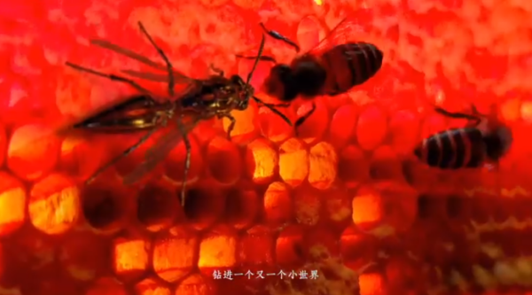 在这个过程中,华为P30 Pro的微距功能发挥了作用,将手机插进风箱里,把蜜蜂拍得特别清楚,而这也避免了蜜蜂对拍摄人员的攻击,人类和蜜蜂各自安静地工作,互不打扰。彭宥纶将这个过程称之为“创作者与拍摄者最好的一个不被打扰状态”,以及“平等感”。
