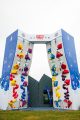以“坡”为灵感设计的巨型主门头,成为观众跨入“极限世界”的传送门;“空中骑迹·奇妙镜屋”以小轮车为灵感,通过镜面空间营造新奇体验;高达数米的“一飞冲天火箭”由万根彩虹线构筑。这些装置不仅是拍照打卡的潮流地标,更承载了城市运动挑战自我、突破极限的精神内核。观众可借位拍摄创意照片,亲身参与这场运动与潮流交织的盛会,体验从旁观者到参与者的角色转变。