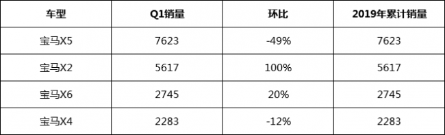2018年12月刚刚迎来换代的宝马X5销量为7623辆,环比下滑49%新车销量不及老款车型,当然这也可能与车型即将换代,一部分消费者抄底行为有关。相比之下,宝马X6和X4的销量远远不及X5那么高,月均不足千辆的销量也不算高,但毕竟X6和X4属于一个细分领域,受众群体非常小,能够交出这样的成绩也算一份不错的答卷。